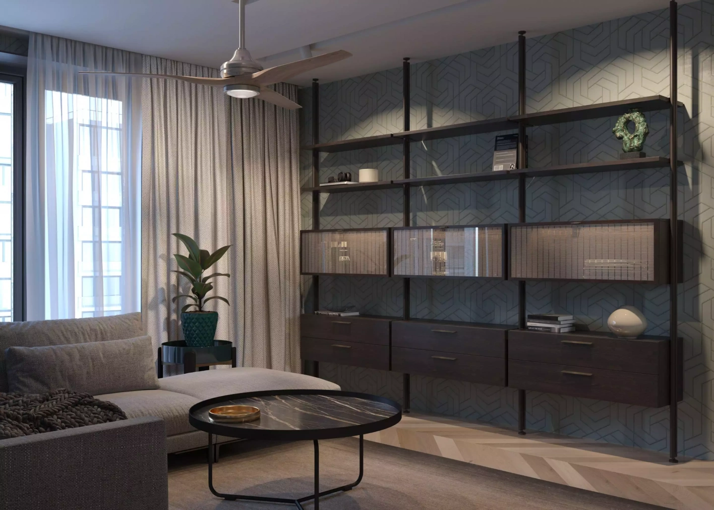 Зонирование пространства с помощью многофункциональных стеллажей